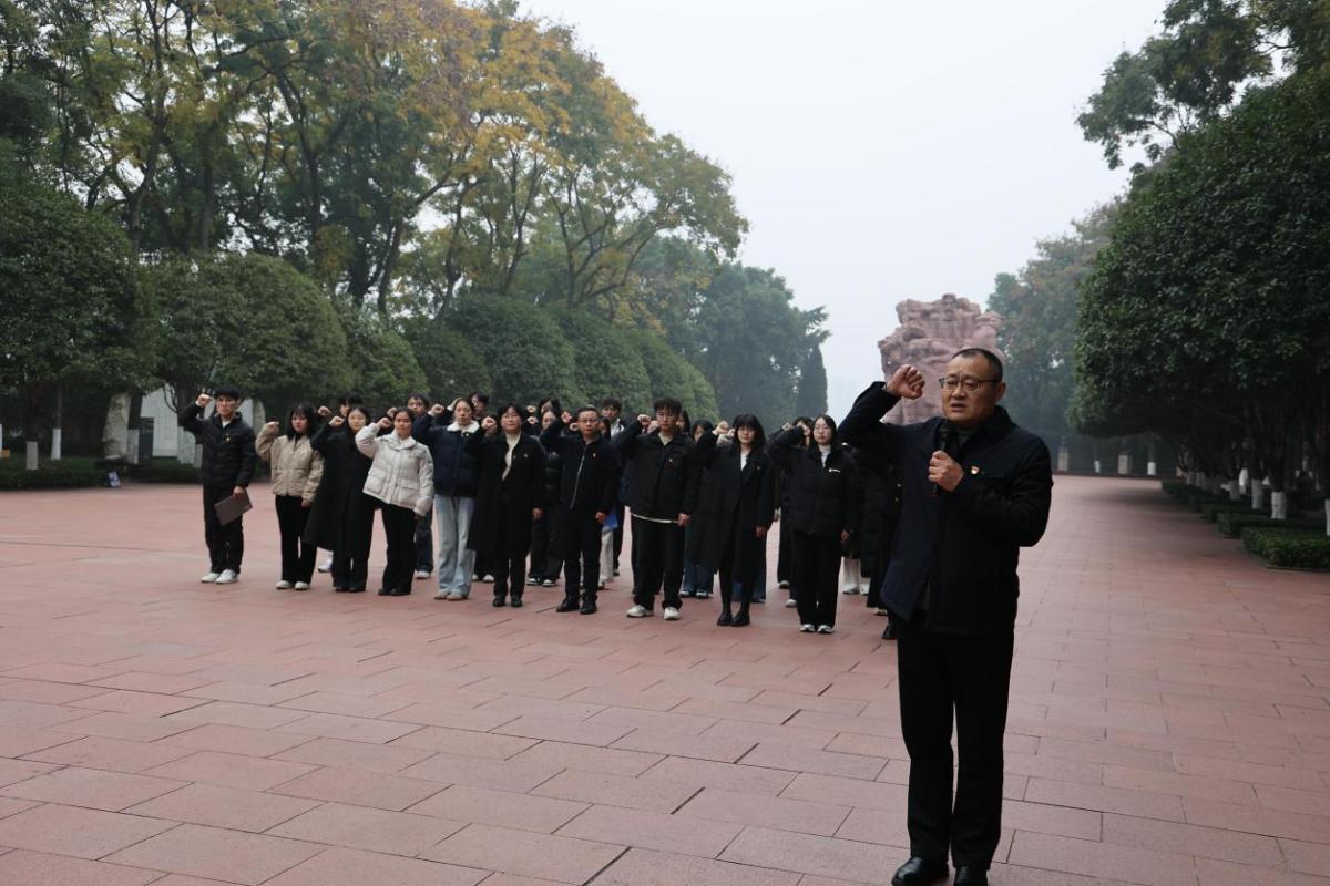 2025年12月2日上午,研究生党支部在立德楼B503召开预备党员发展大会,并赴重庆歌乐山烈士陵园举行新党员入党宣誓暨其他党员重温入党誓词仪式。