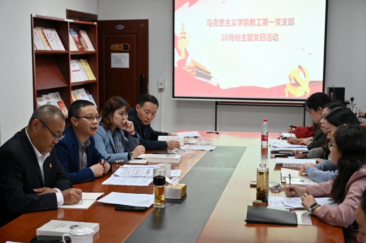 2025年10月31日,马克思主义学院教工第一党支部在B503会议室召开10月主题党日活动。本次党日活动主题是“坚持党建引领 深化改革创新”。会议由支部书记肖玲玲同志主持,全体党员参会。