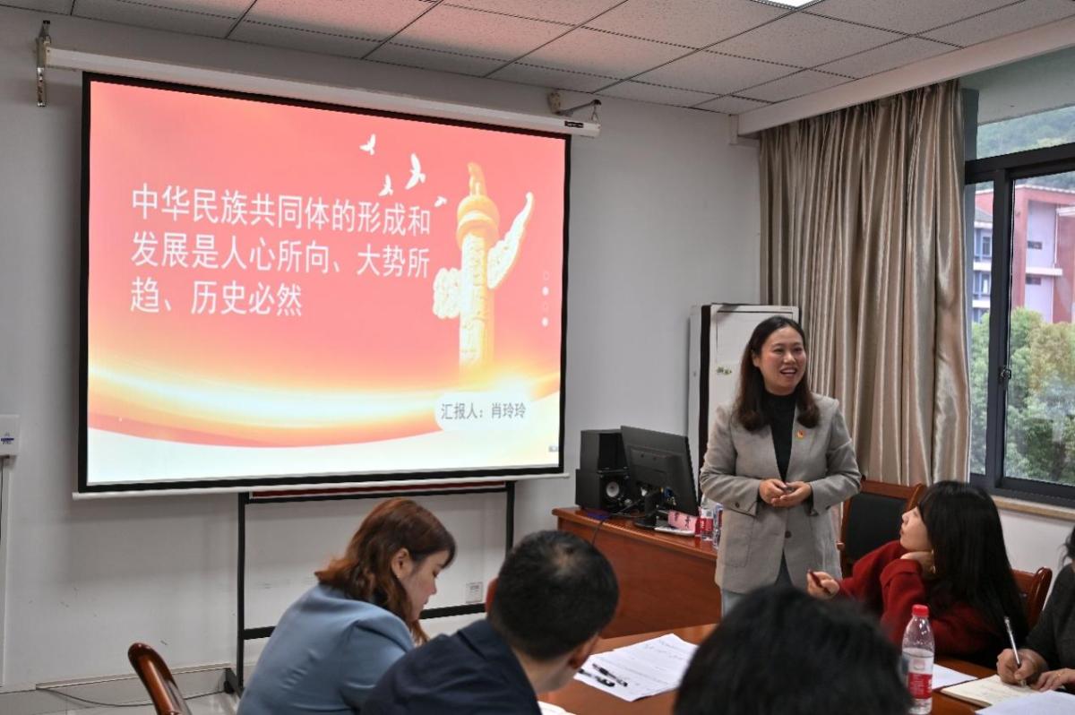 随后,支部书记肖玲玲同志领学了《求是》2025年19期文章“中华民族共同体的形成和发展是人心所向、大势所趋、历史必然”。她主要从中华民族共同体形成和发展的历史根基、中华民族缔造统一的多民族国家的内生动力、中华民族铸就多元一体文明格局的文化基因、中华民族构建统一经济体的强大力量以及中华民族一家亲的坚强纽带几个方面进行了分享。她表示,中华民族是有着五千多年文明史的伟大民族。历史充分证明,中华民族是各民族长期交往交流交融的结果,各民族只有不断团结融合、自觉融入中华民族大家庭,才能拥有更美好的未来。