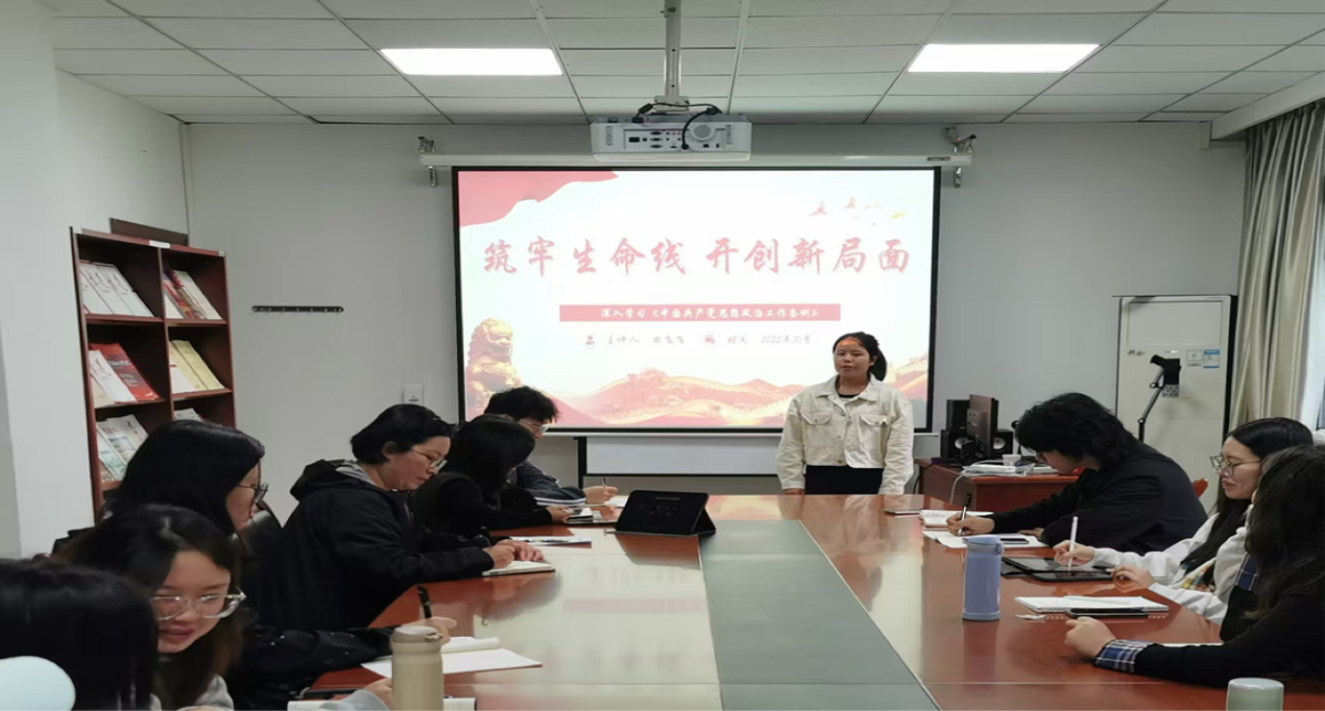 田飞飞同志主讲《学习中国共产党思想政治工作条例》,表示我们马克思主义学院青年学生党员要带头学思想、铸忠诚,带头做好新时代新征程思想政治工作。