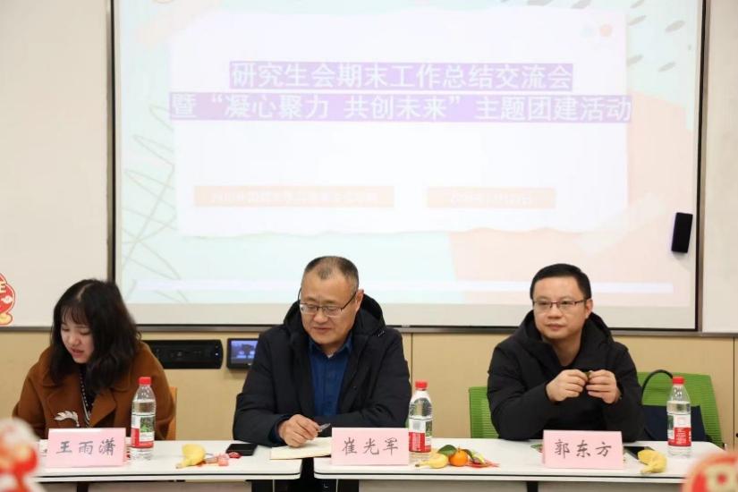 为强化学生骨干内部建设,锤炼成员综合素养,凝聚团队奋进力量,我院于12月23日下午在歌乐楼B603成功举办研究生会期末工作总结交流会暨“凝心聚力 共创未来”主题团建活动。马克思主义学院党总支书记崔光军、院长兼党总支副书记郭东方、研究生辅导员王雨潇及全体学院学生骨干齐聚一堂,共话成长。活动由团总支书记王雨潇主持。