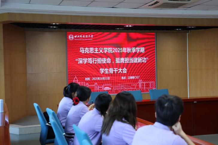 为持续推动学院学生工作高质量发展,注入新鲜活力,我院于10月11日在立德楼C517举行了20205年秋季学期“深学笃行担使命,挺膺担当建新功”学生骨干大会。马克思主义学院党总支书记崔光军,组织员徐艳,团总支书记王雨潇,学院第八届和第九届研究生会全体成员以及2024级2025级全体班委参加本次活动。