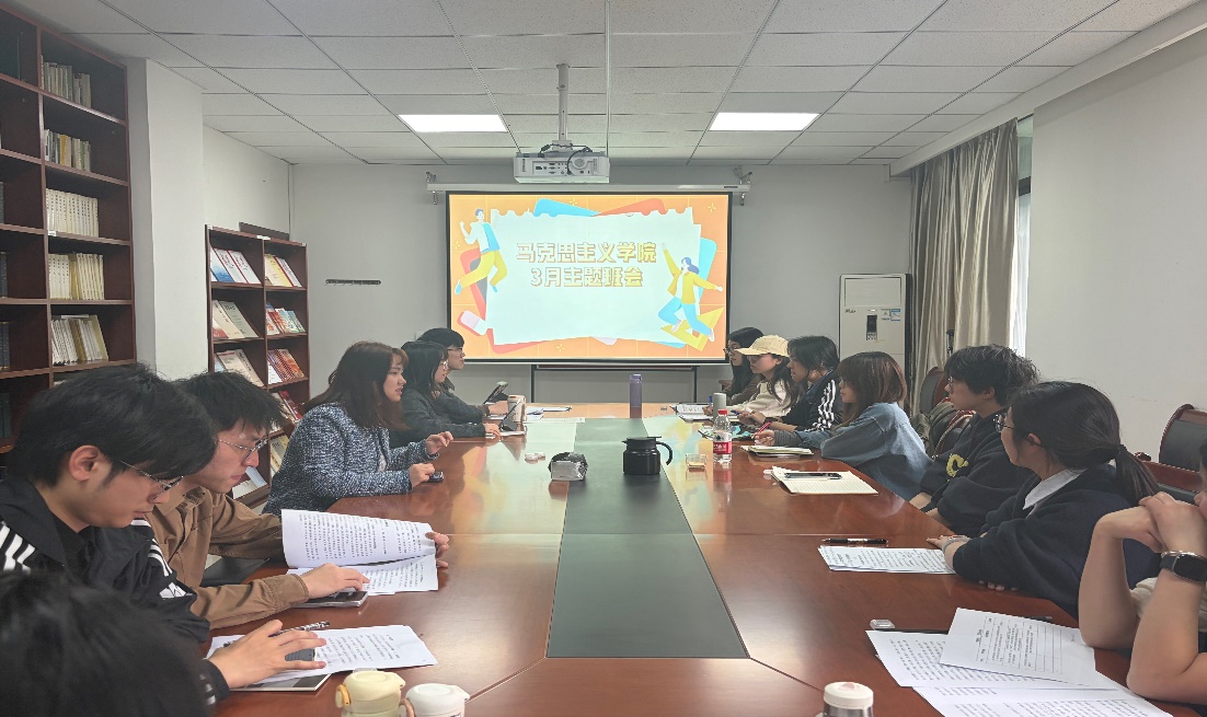 3月13日,我院在立德楼B503开展3月主题教育班会。活动由马克思主义学院辅导员王雨潇老师主持,2025级全体研究生参加。
