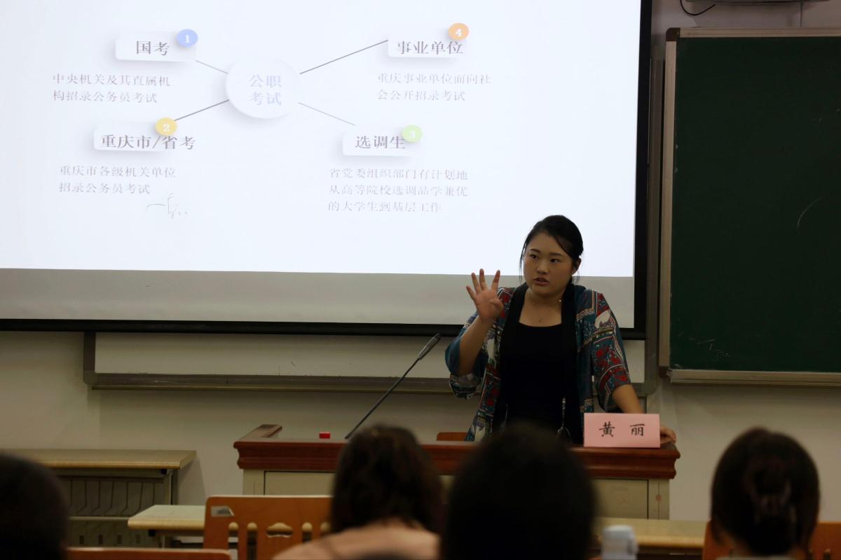 为助力我院学子科学备考,提升备考效率与应试能力,我院于10月15日晚上19:00在歌乐楼C207成功举办编制类就业备考分享会。本次讲座特邀高顿教育行测文科首席讲师黄丽担任主讲,2024级、2025级全体同学参加。