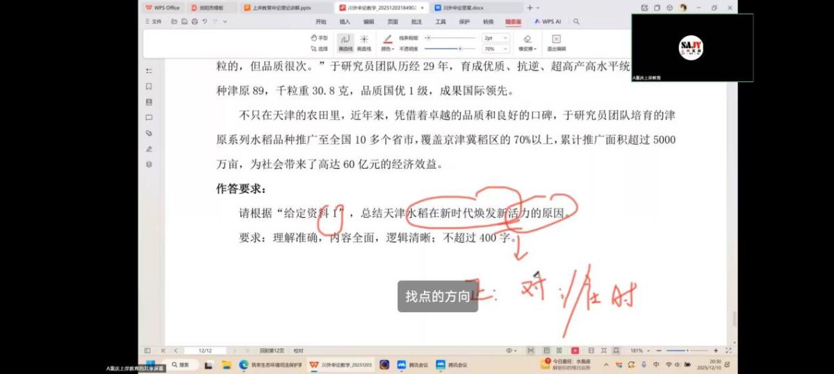 为帮助同学们系统掌握公务员考试中申论科目的重要解题方法,12月3日,我院“公职就业护航计划”第5期公开课特邀重庆某培训机构刘老师担任主讲,学院全体研究生通过线上的方式参与学习。